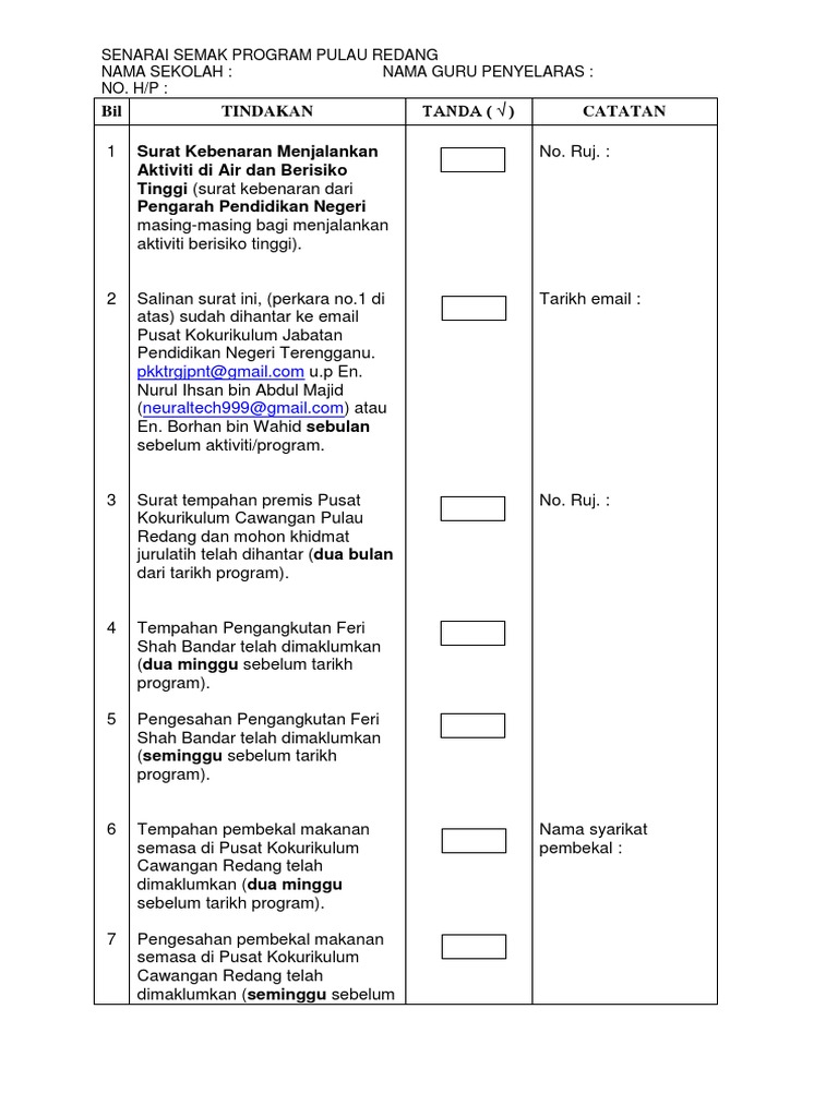 Check List Pkk Redang
