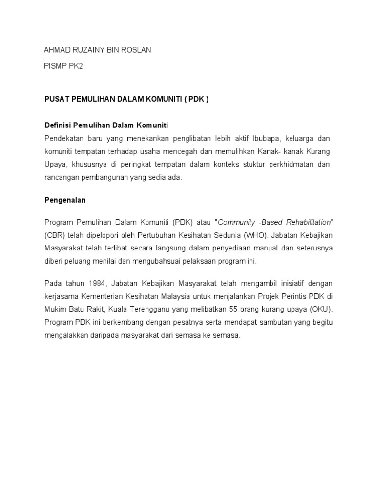 Program Pemulihan Dalam Komuniti Pdk Pdknet