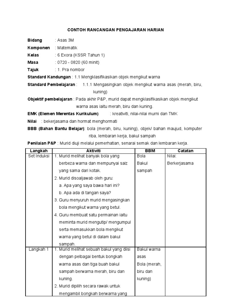 Ruang 3d Dan 2d Contoh Rancangan Pengajaran Harian Matematik Tahun 1