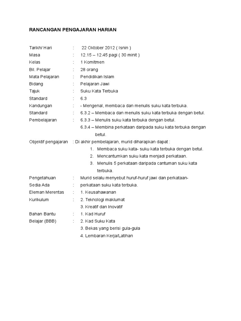 Pdf Rancangan Pengajaran Harian Pendidikan Agama Islam Lin Lasim Academia Edu