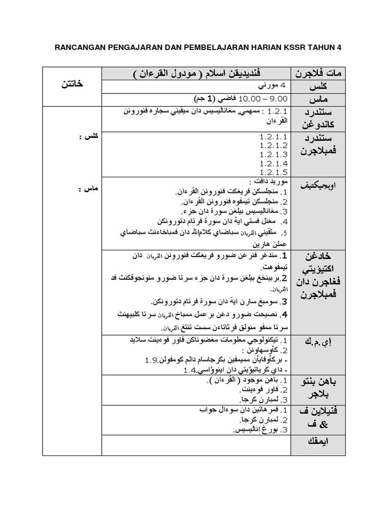 Rancangan Pengajaran Harian Pendidikan Islam Tahun 4