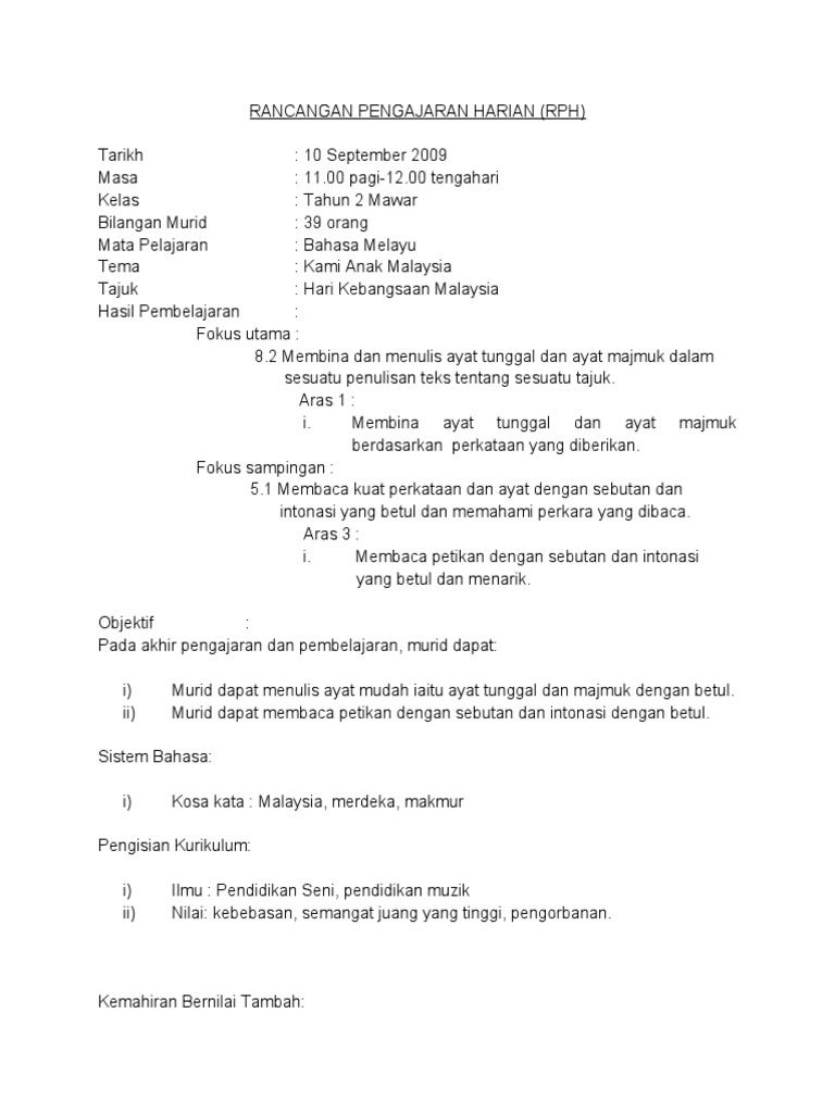 Rancangan Pengajaran Harian Bm 2