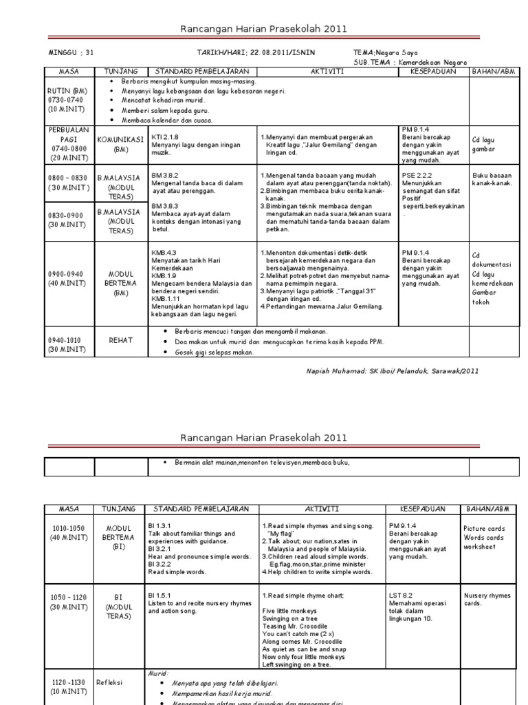 Contoh Persediaan Mengajar Prasekolah Cute766