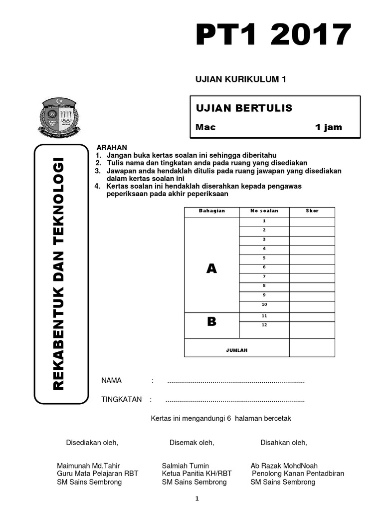 Soalan Peperiksaan Pertengahan Tahun Rbt Tingkatan 1 Soalan Ppt Reka Bentuk Teknologi