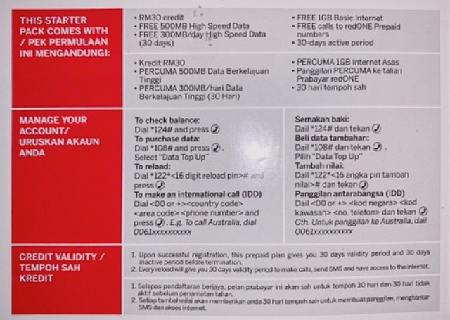 Redone Prepaid Sim Rm30 Credit Shopee Malaysia