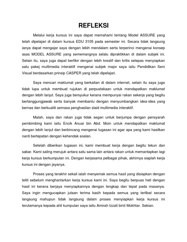 Doc Contoh Refleksi Zalina Razali Academia Edu