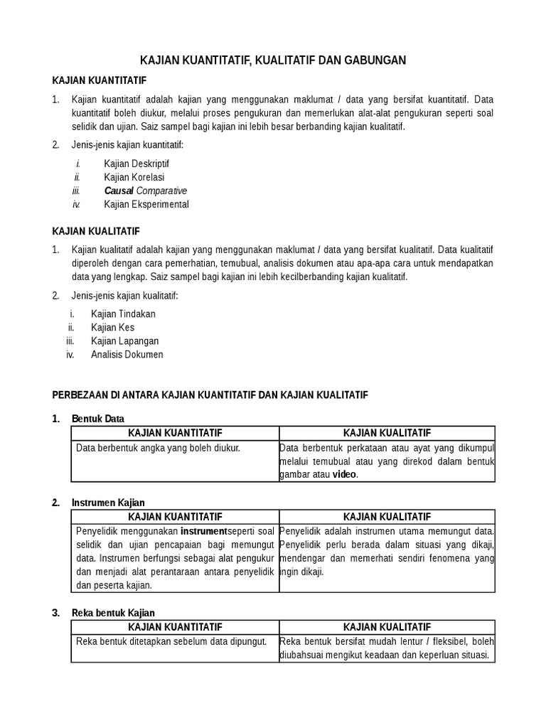 Doc Perbezaan Kajian Kuantitatif Dan Kualitatif Fiona Kong Academia Edu