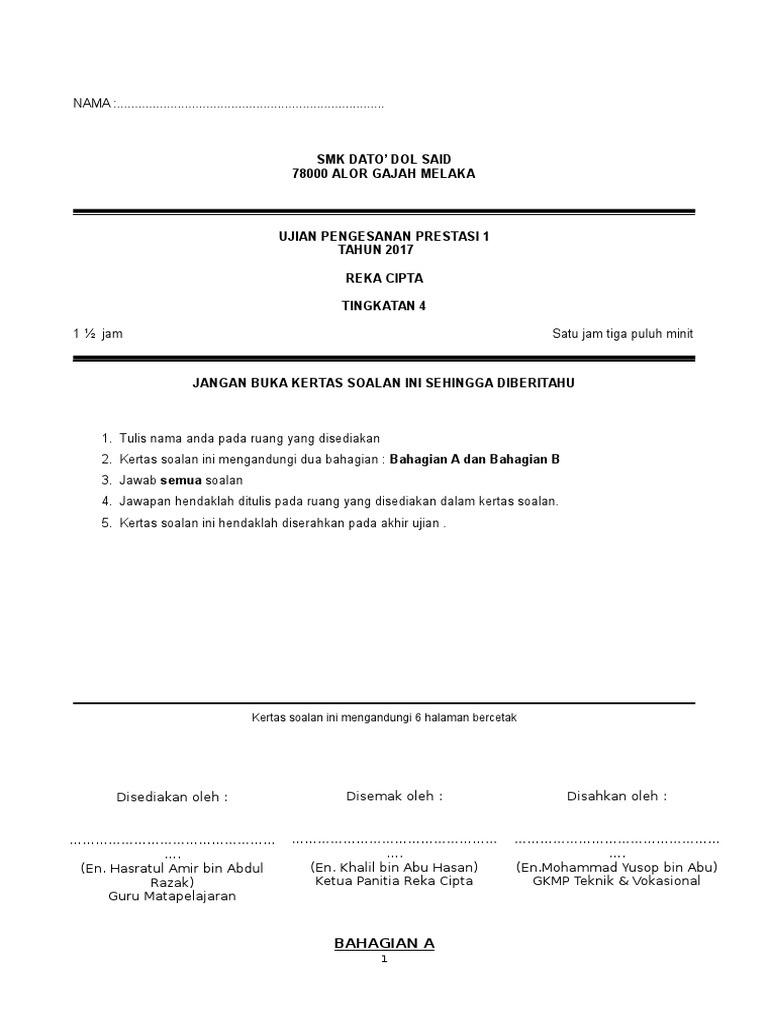 Ujian 1 Reka Cipta Tingkatan 4 2017