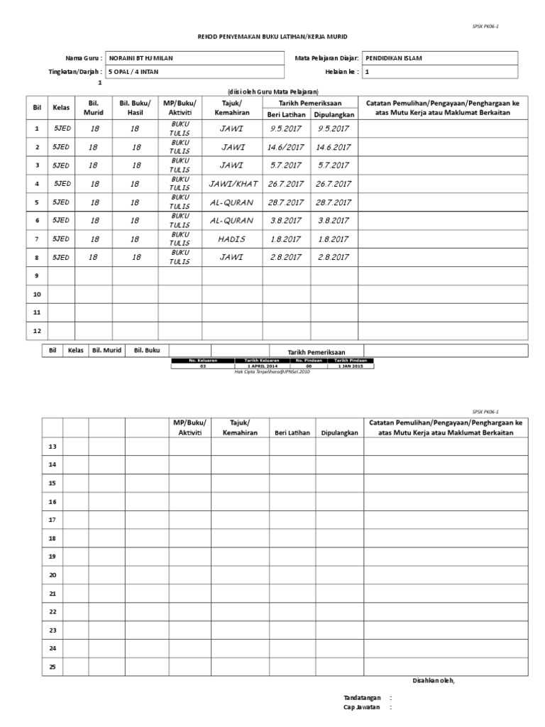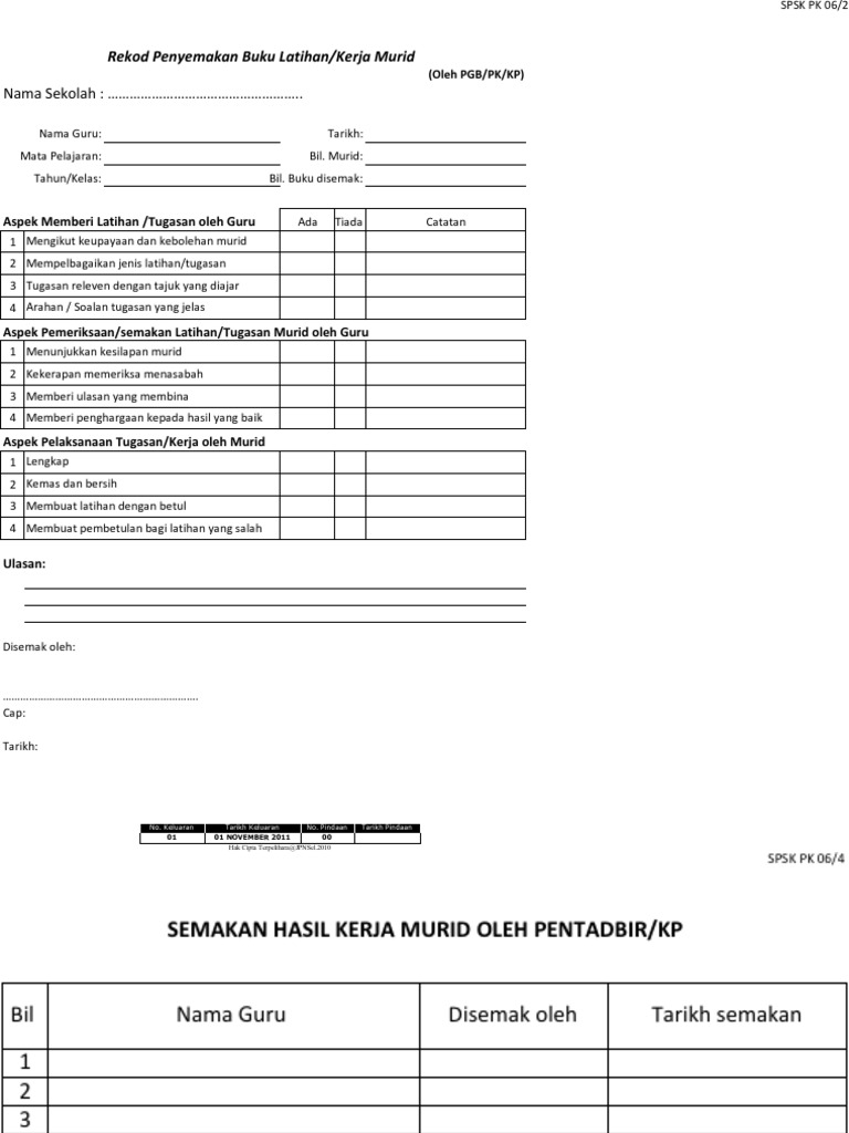 Borang Pk 06 1 Rekod Semakan Kerja Murid Edit