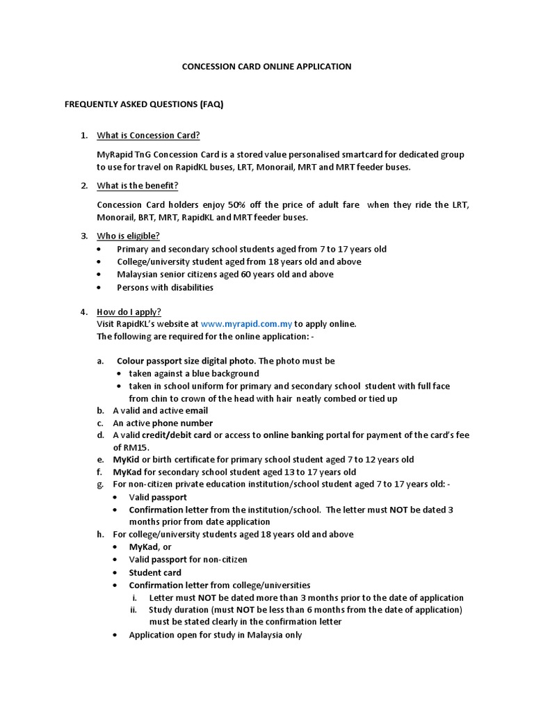 Students Info Dear Students Currently Application For Student Concession Card Can Only Be Made Via Online At Rapid Kl S Website Starting 20 June 2018 Sharing Rapidkl