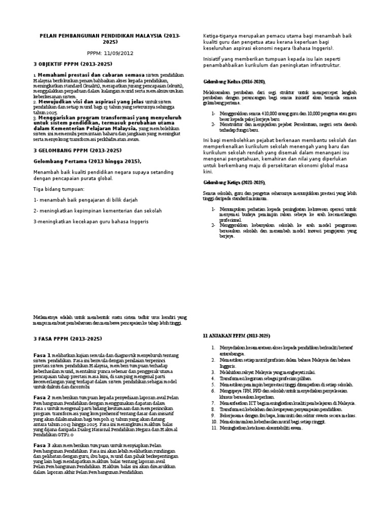 Coet Kms Ringkasan Pelan Pembangunan Pendidikan Malaysia Pppm