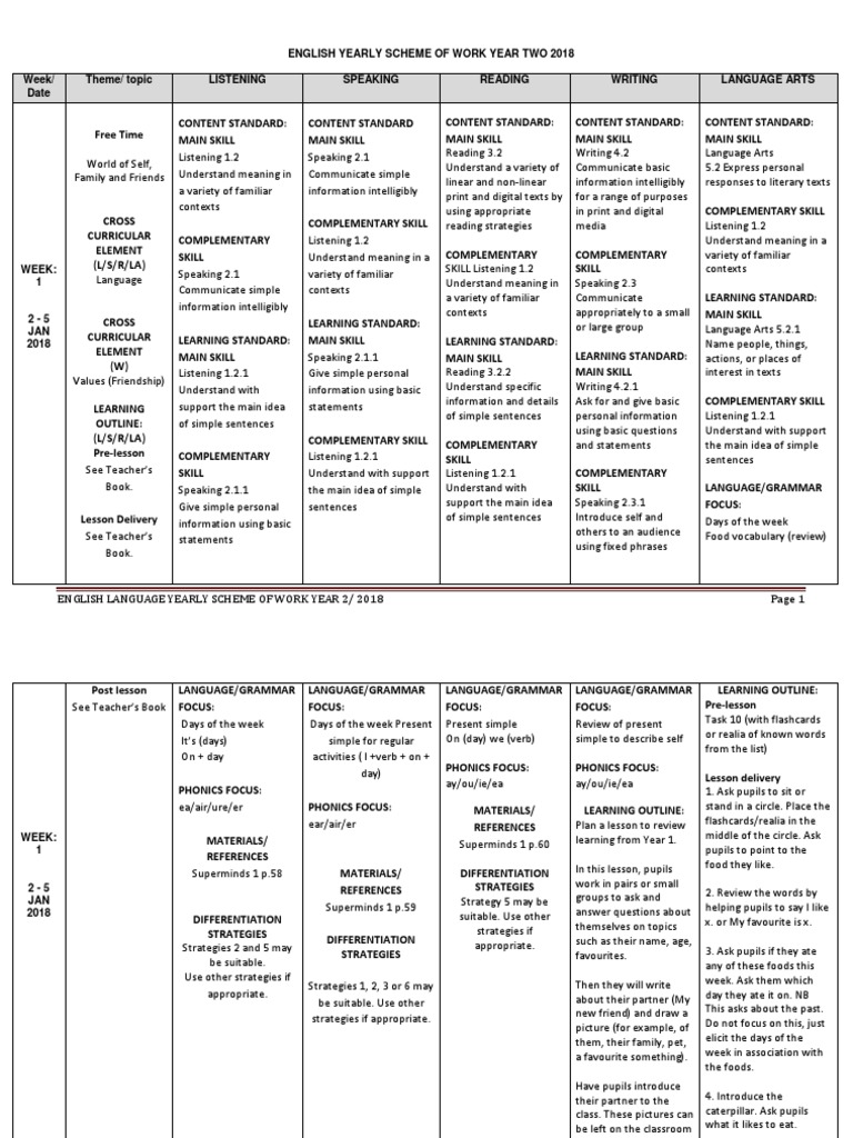 Contoh Rancangan Pengajaran Harian Bahasa Inggeris Tahun 1 2016 Word Teachers