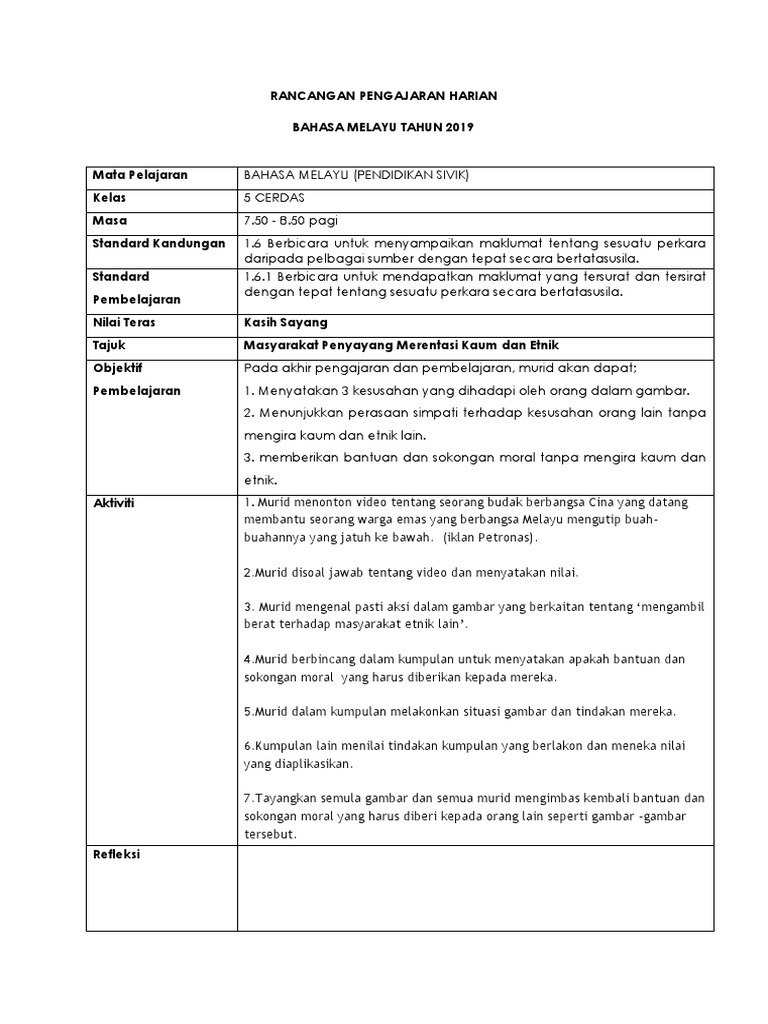 Rancangan Pengajaran Harian Pendidikan Moral Ahmad Husaini Academia Edu