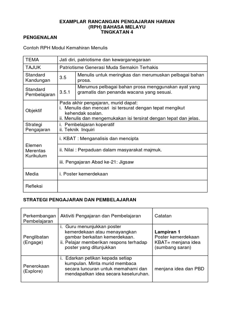 Download Rpt Bahasa Melayu Tingkatan 5 Menarik Contoh Rph Abad 21 Pendidik2u Skoloh