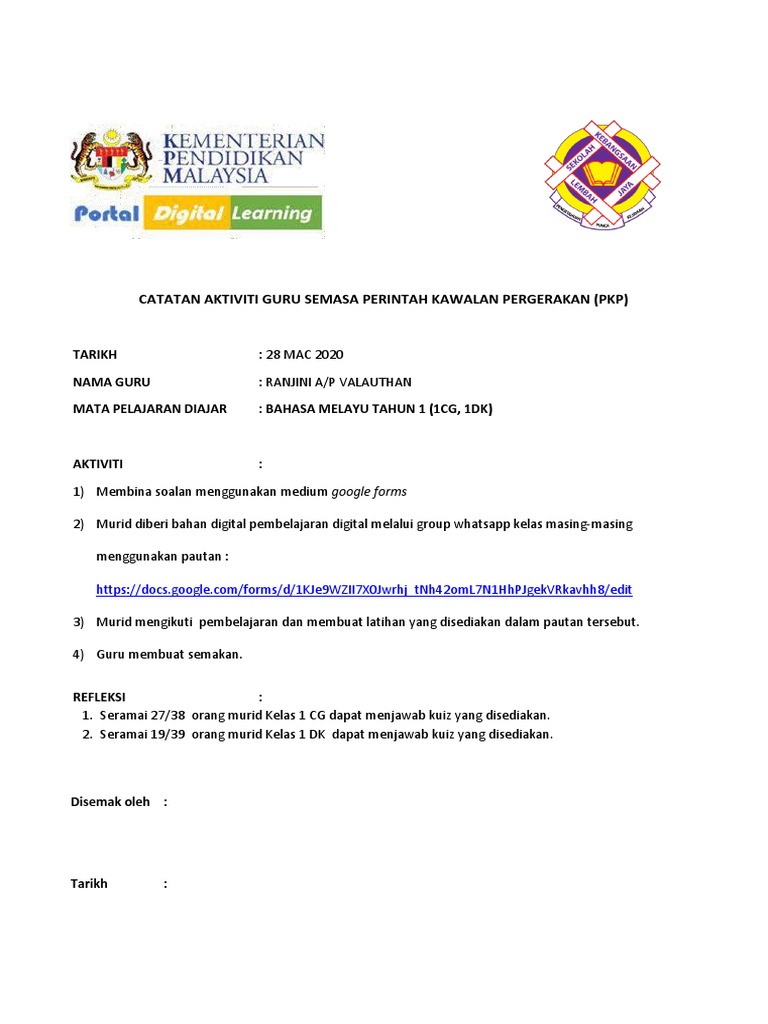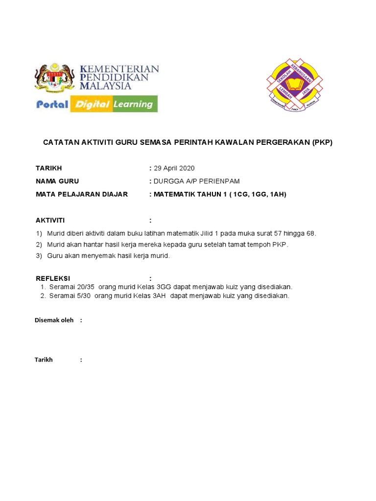 Contoh Template Catatan Aktiviti Guru Semasa Perintah Kawalan Pergerakan Mycikgu Net