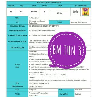 Doc Rancangan Pengajaran Harian Bahasa Malaysia Tahun 3 Kssr Victoria Carl M Academia Edu