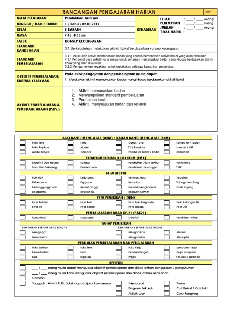 Templat Rancangan Pengajaran Harian Rph Pembelajaran Abad Ke 21 Pak 21