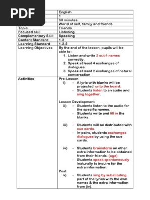 253733162 Contoh Complete Lesson Plan Rph Bahasa Inggeris Form 1 2 3 Lesson Plan Friendship