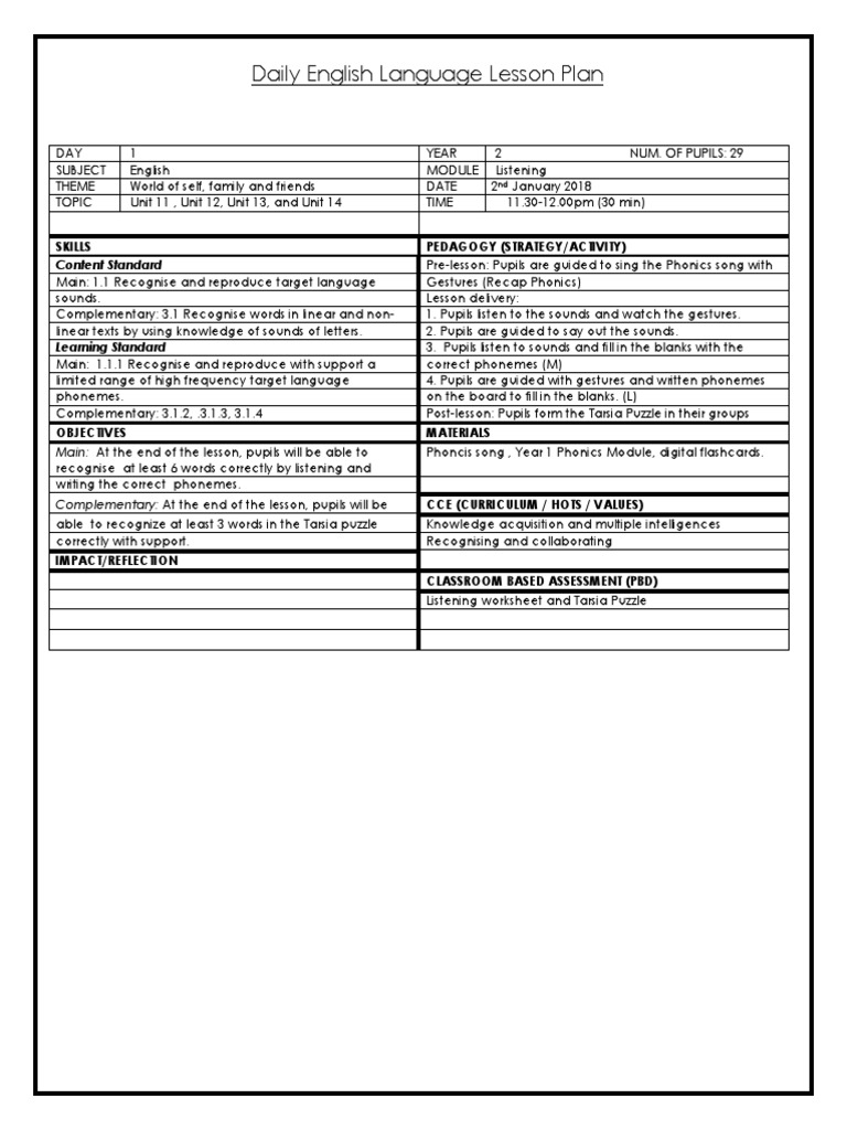 Template Lp Eng Cefr Aligned Year 1 Phonics 2018 Phonics Lesson Plan