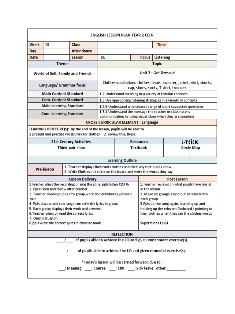 English Lesson Plan Year 2 Cefr Lesson Plan Pedagogy