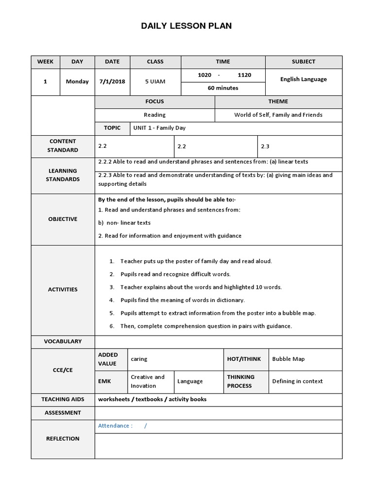 Doc Daily Lesson Plan English Language Year 3 Noor Aishah Academia Edu