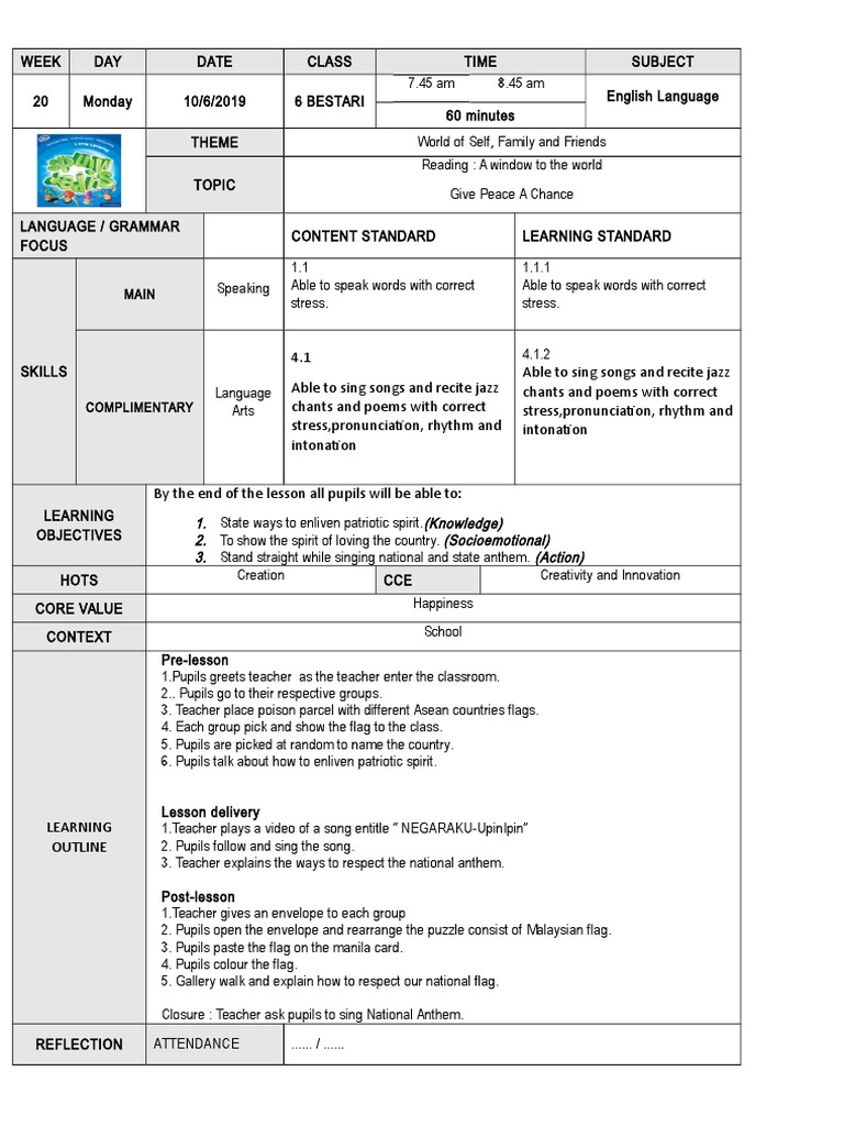 Lesson Plan Civic English Sk Year 6 English Language Teachers