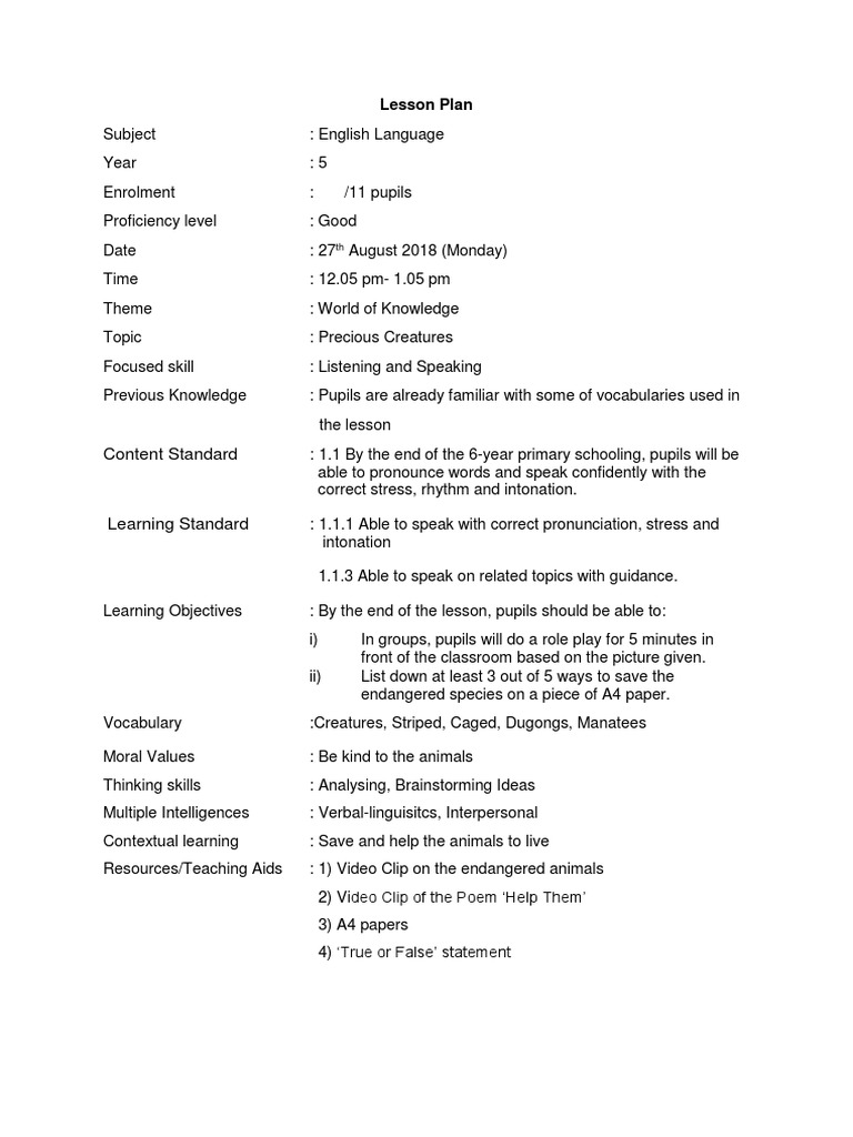 Lesson Plan For Year 6 Kssr Sjk Lesson Plan Cognitive Science