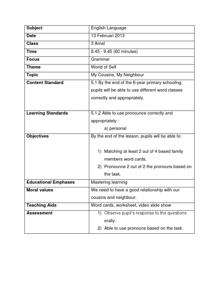 Contoh Rph Bahasa Inggeris Lesson Plan Human Communication