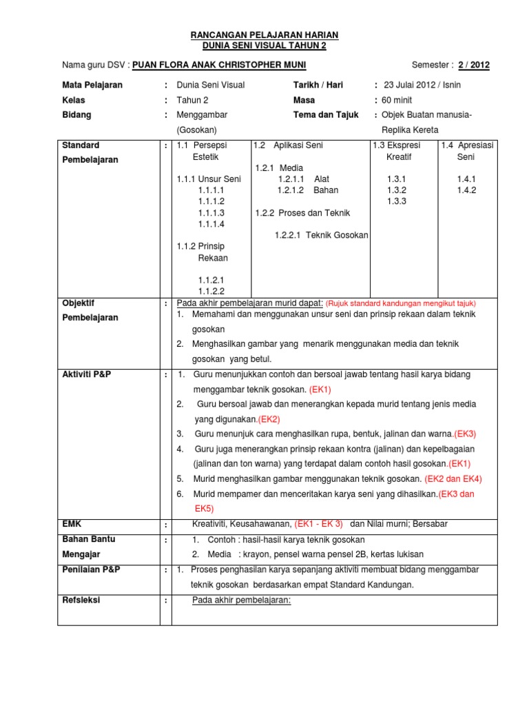 Doc Rancangan Pengajaran Harian Dunia Seni Visual Tahun 2 Siti Ana Academia Edu