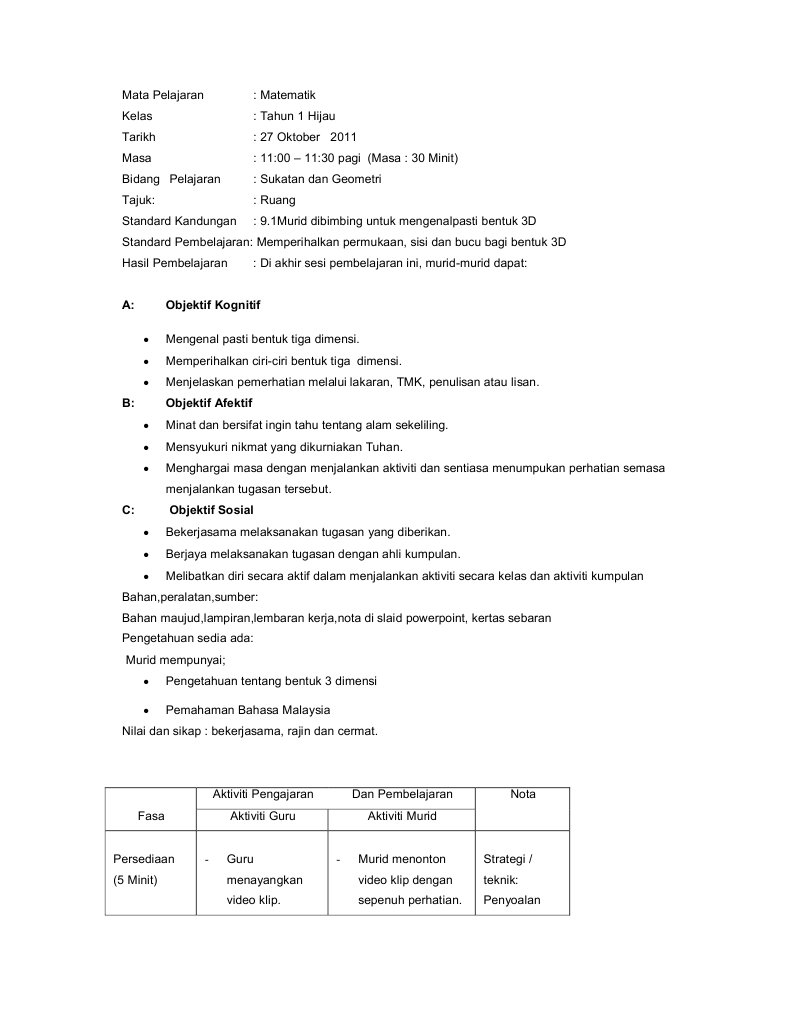 Contoh Rancangan Pengajaran Harian Matematik Tahun 4 Mass Cute766