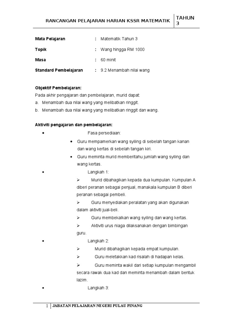 Dokumen Tips Rph Penolakan Wang Matematik Tahun 4