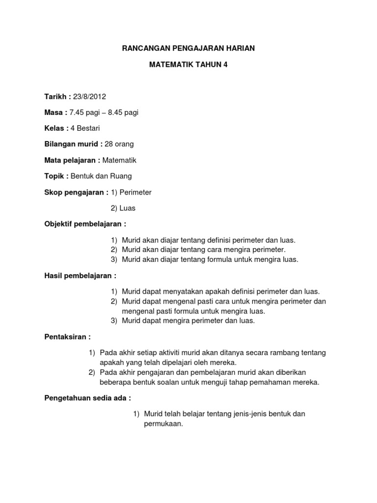 Contoh Rph Pdp Matematik Sm Lessons Tes Teach
