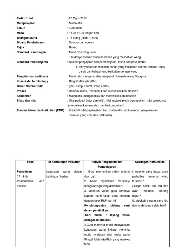 Dokumen Tips Rph Penolakan Wang Matematik Tahun 4