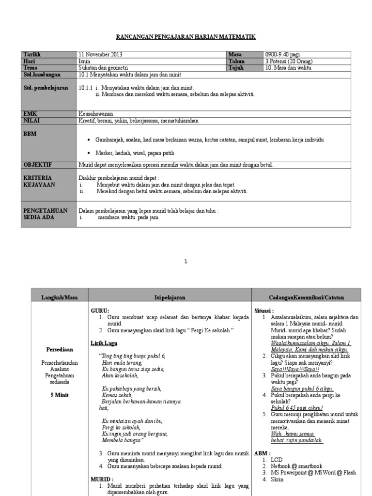 Rancangan pengajaran harian matematik tahun 6 tarikh kelas masa bidang masa dan waktu tajuk a. Dalam rph ini akan terdapat tarikh waktu masa topik dan kandungan pembelajaran aktiviti yang dirangka bahan bantu mengajar yang digunakan dan juga refleksi terhadap pengajaran yang telah dilaksanakan. Terima kasih kepada mereka yang sanggup berkongsi. Pengajaran matematik sekolah rendah upsi mata pelajaran.