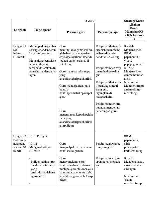 Rancangan Pengajaran Harian Poligon Tingkatan 1