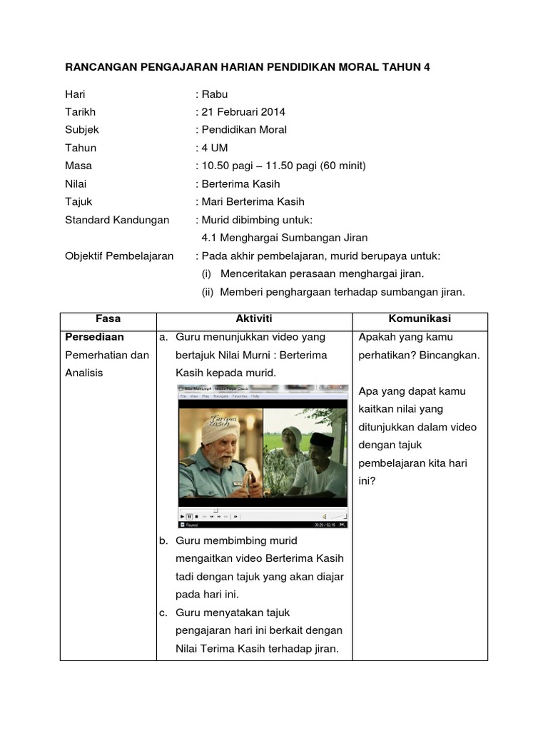 Download Rpt Pendidikan Moral Tahun 4 Hebat 3 Rph Pendidikan Moral Berterima Kasih Tahun 4 Contoh Resume Cover Letter Curriculum Vitae Terbaik