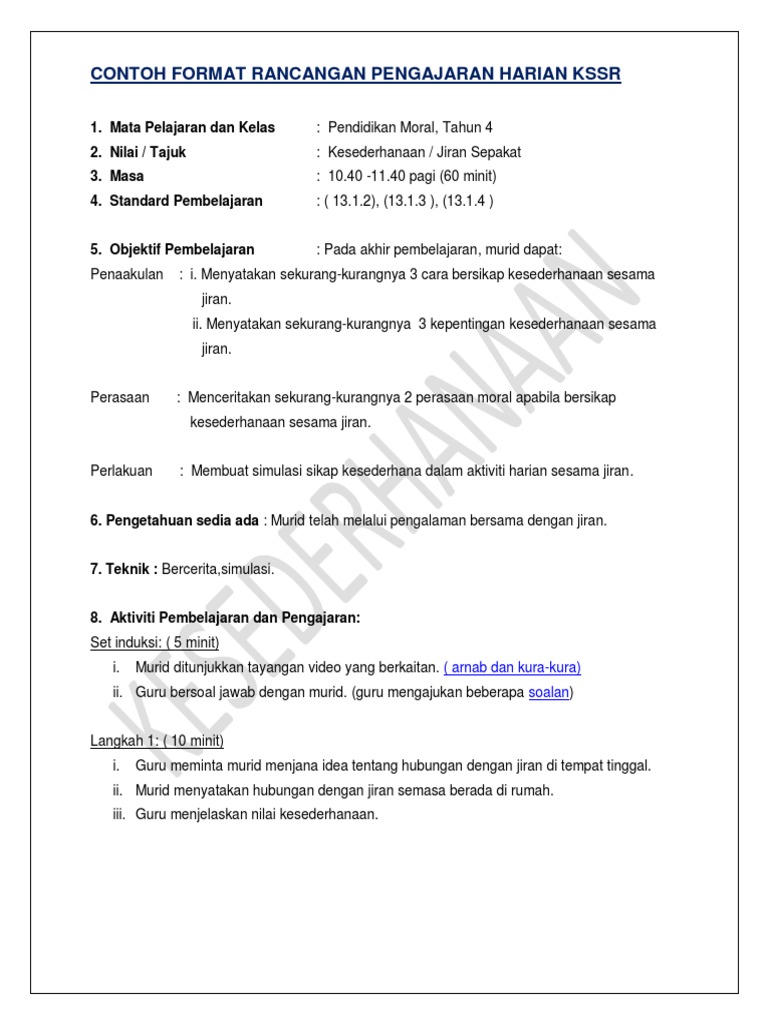 Rph Pendidikan Moral Kssr Tahun 4 2 Docx