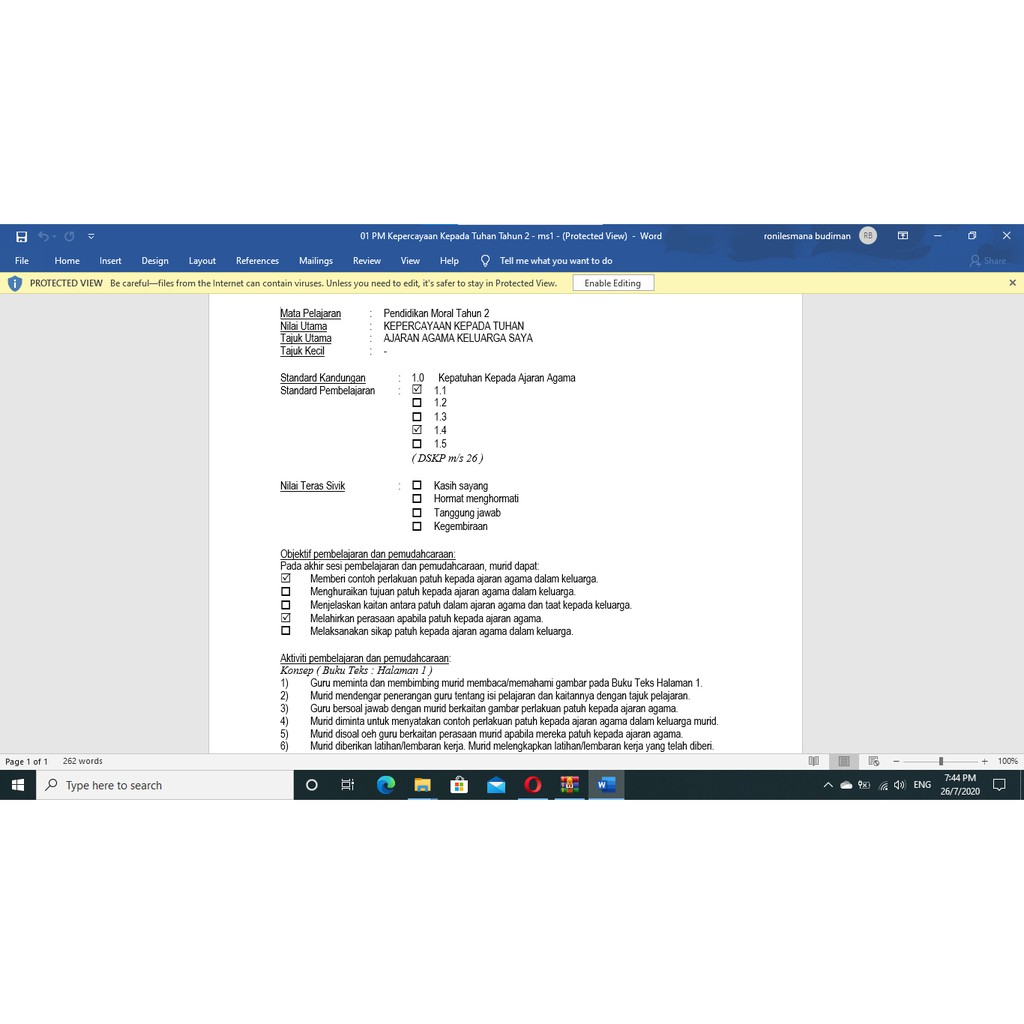 Rph Pendidikan Moral Tahun 1 2020