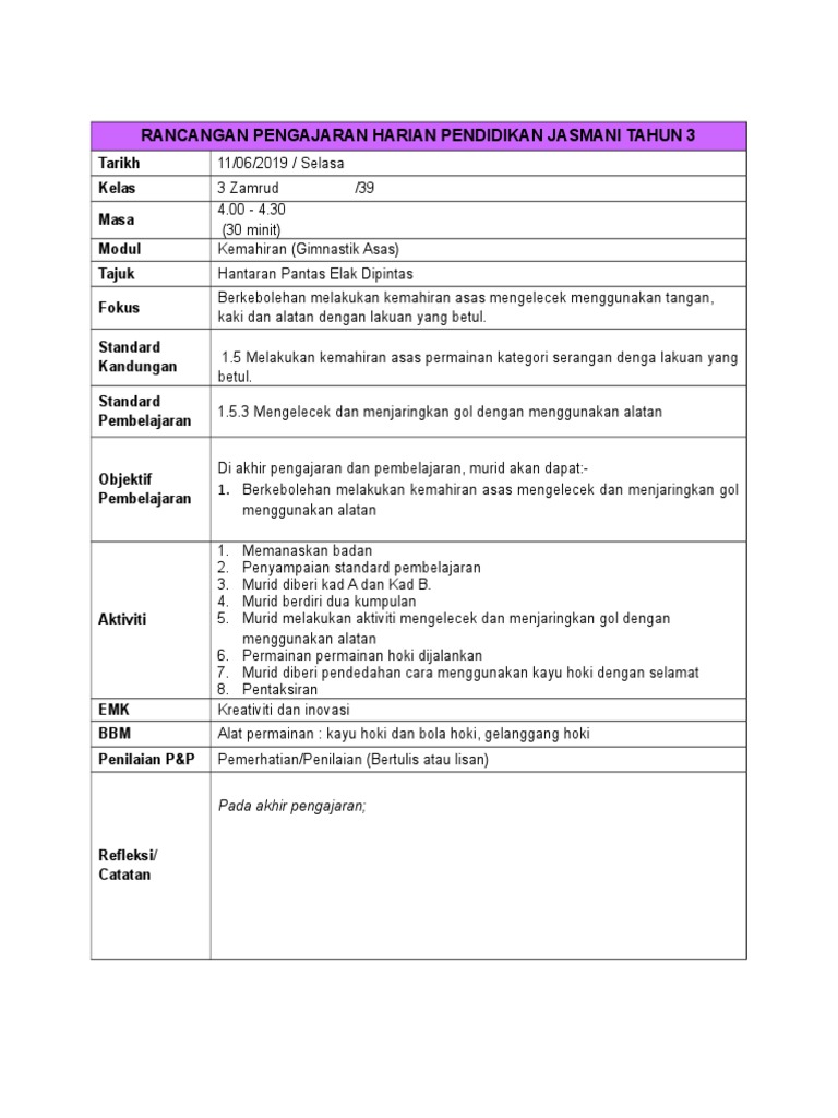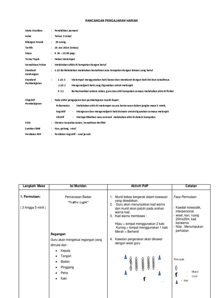 Pdf Rancangan Pengajaran Harian Pendidikan Jasmani Kssr Tahun 2 Rod Zie Academia Edu