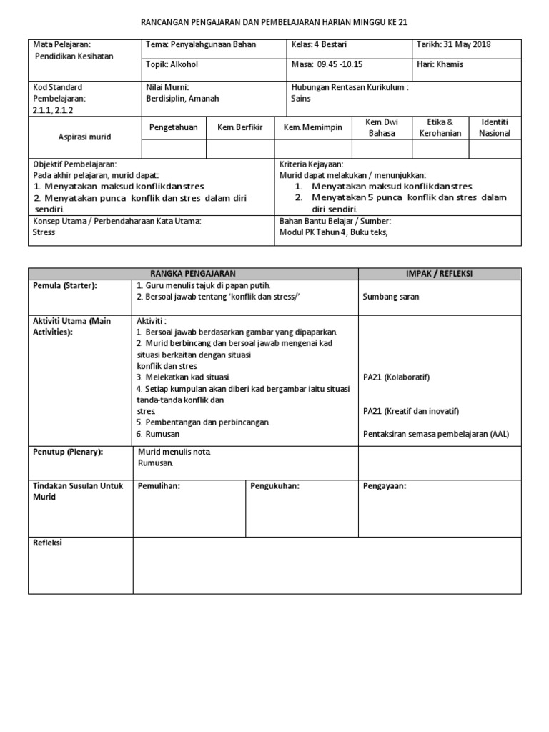 Rph Pendidikan Kesihatan Doc Contoh Rancangan Pelajaran Harian Mata Pelajaran Dan Kelas Tema Tajuk Masa Standard Pembelajaran Objektif Pembelajaran Course Hero