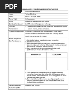 Rph Tahun 2 Kssr Rancangan Mengajar Tahun 2 Pendidikan Kesihatan 1