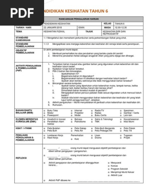 Pdf Rancangan Pengajaran Harian Pendidikan Kesihatan Kssr Tahun 3 Victoria Carl M Academia Edu