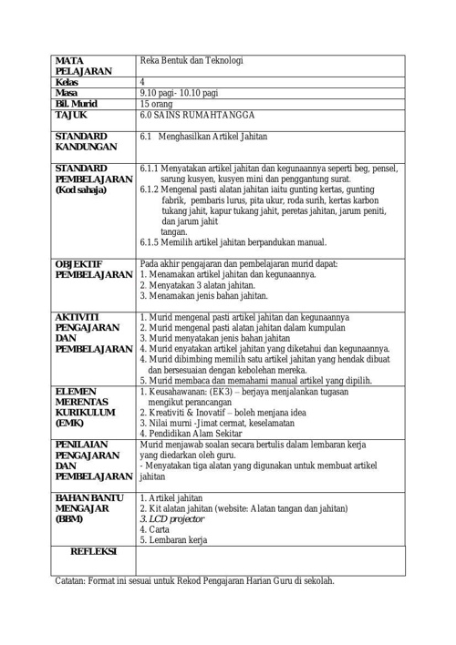 Rph Reka Bentuk Dan Teknologi Rbt Tahun 6 Dan