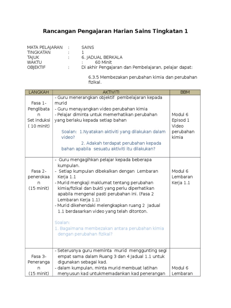 Rancangan Pengajaran Harian Sains Microsoft Power Point Teachers