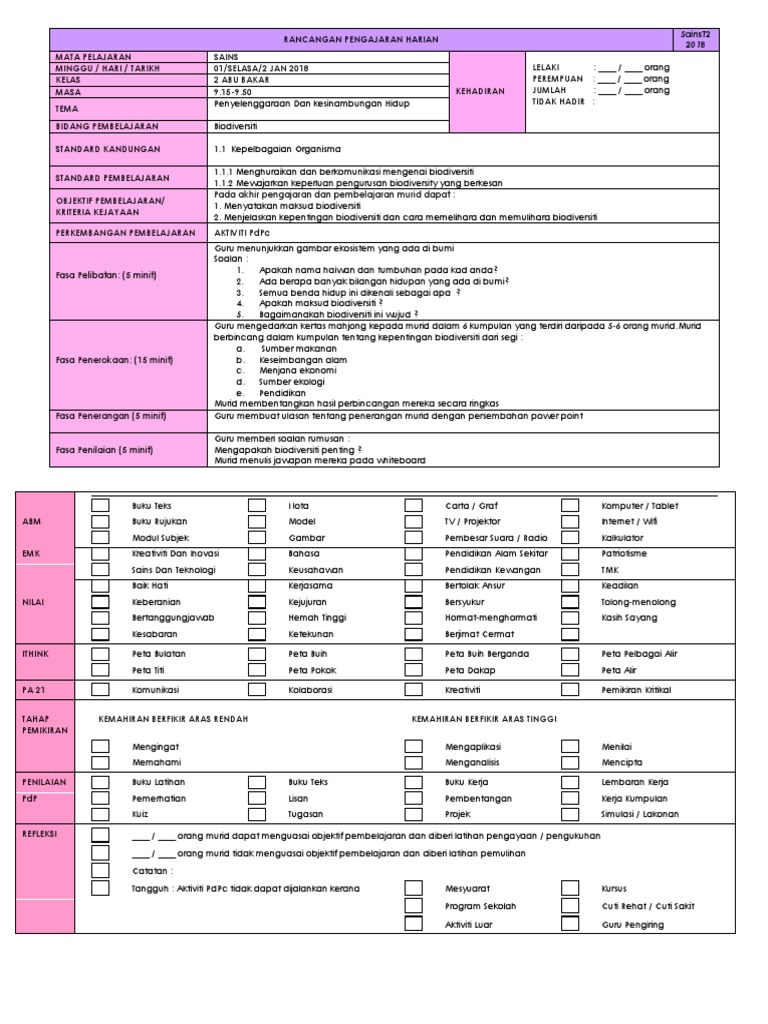 Rancangan Pengajaran Harian Sains Microsoft Power Point Teachers