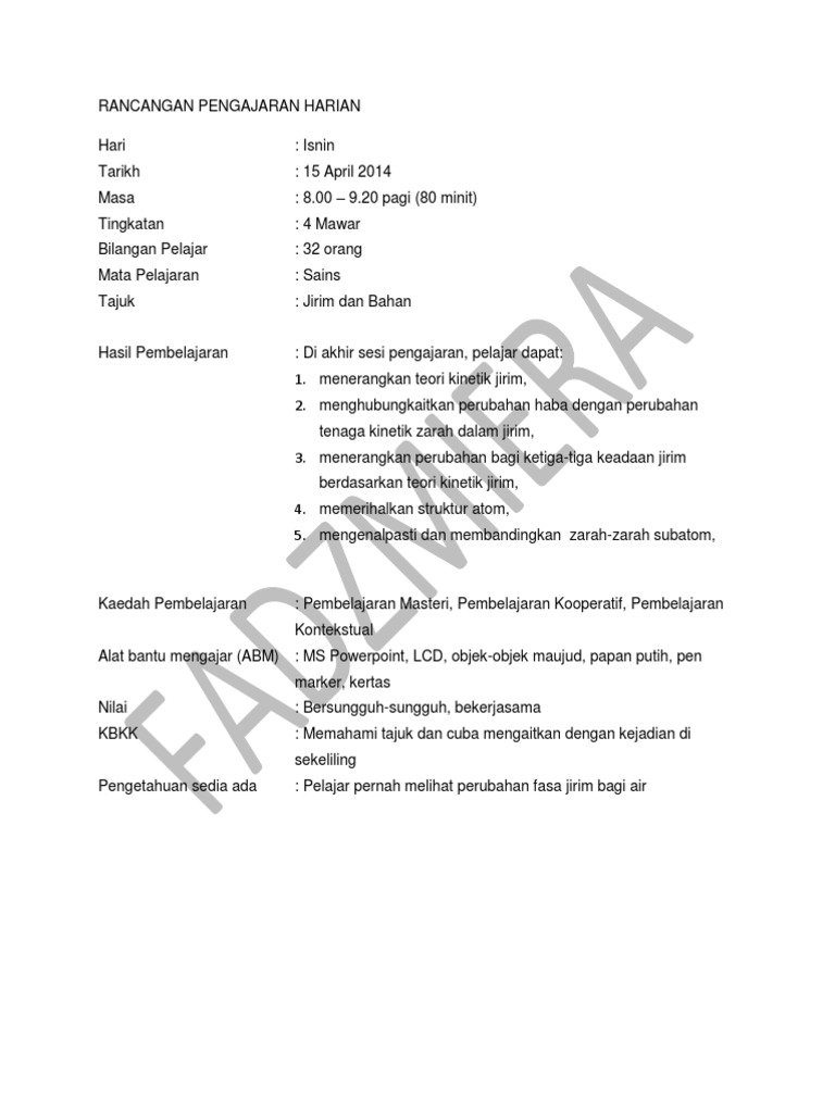 Rancangan Pengajaran Harian Sains Tingkatan 3 Doc Google Drive