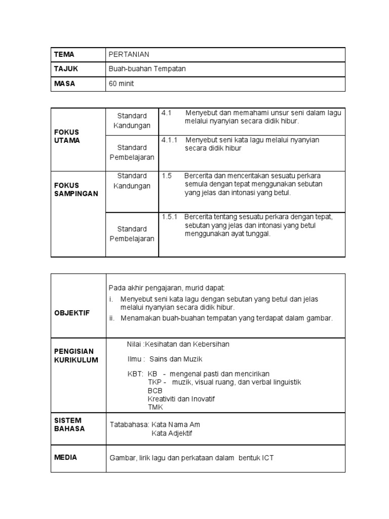 Rancangan Pengajaran Harian Pendidikan Seni Sayur Sayuran