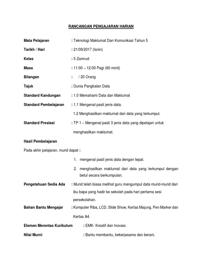 339782956 Rph Tmk Thn 5 Blog Pptx Rancangan Pengajaran Harian Tmk Tahun 5 Mata Pelajaran Kelas Bil Murid Tmk 5 Ibnu Sina 35 Orang Strategi Kolaborasi Course Hero