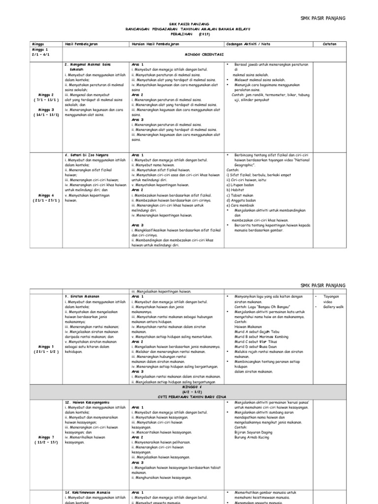 Rptabm2020 Docx Smk Sungai Merah Sibu Sarawak Rancangan Pengajaran Tahunan Amalan Bahasa Melayu Abm Kskp Tingkatan Peralihan 2020 Minggu Tajuk Course Hero