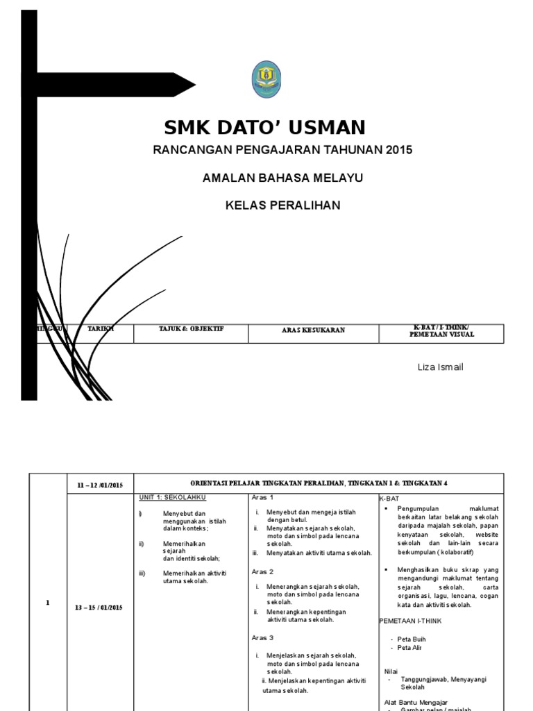 Rancangan Pelajaran Tahunan 2013 Amalan Bahasa Melayu Peralihan Minggu Tajuk Cadangan Istilah